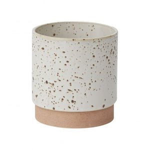 Cache-pot avec trou de drainage et soucoupe.