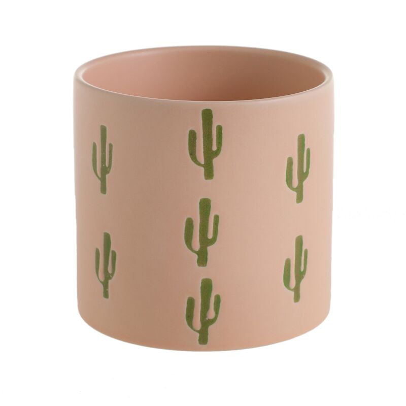 Cache-pot rose avec cactus.