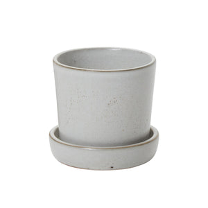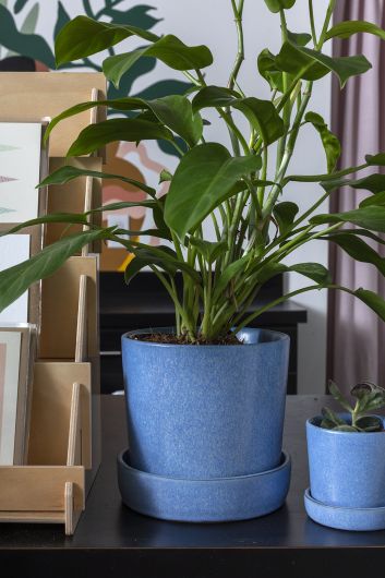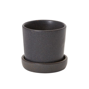 Cache-pot avec trou de drainage et soucoupe.